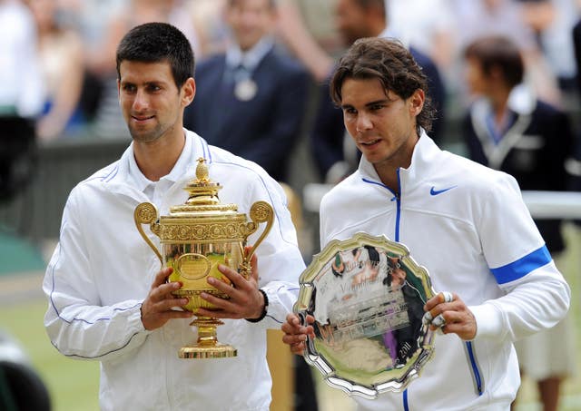 Novak Djokovic (left) and Rafael Nadal (right) pictured at the end of their 2011 men's singles final at Wimbledon (Anthony Devlin/PA)